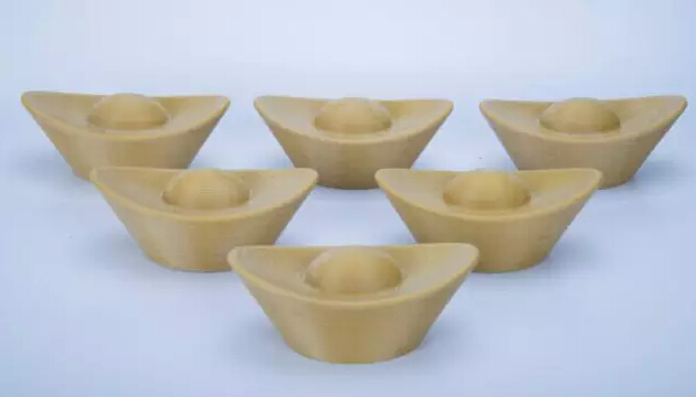 在我國歷史上,最能令人熟記的莫過于金元寶了。金元寶由貴重的黃金或白銀制成,一般白銀居多,黃金稀見。在唐初開元通寶行世時,民間就有取其碩大、貴重之意,旋讀為“開元通寶”的。而元代呼金銀錢為“元寶”,則是元朝之寶的意思。這些3D打印的金元寶,采用了經(jīng)典款的金色PLA材料打印,打印出來的金元寶透露出啞光,使得其外形效果逼真。一大波“金元寶”襲來,頓時感覺自己富有了!