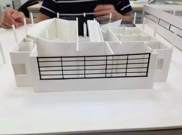 之前看到隈研吾大師v&a at dundee的渲染圖,當(dāng)時(shí)就被美到了,在archidaily和筑龍網(wǎng)上down了圖紙。(結(jié)果做完了發(fā)現(xiàn)原建筑還沒有竣工…汗顏)因?yàn)槲覀兿胱霭咨慕ㄖ└“逵秩菀资軅?,噴漆的話連接處會(huì)有瑕疵,所以我們選擇了abs板…一種新型塑料,充電寶外殼的材質(zhì),非常硬.....建筑外殼是隈研吾大師一貫的間隙風(fēng)格,所以三個(gè)妹子把十多塊板用美工刀劃成條,不說了都是淚…